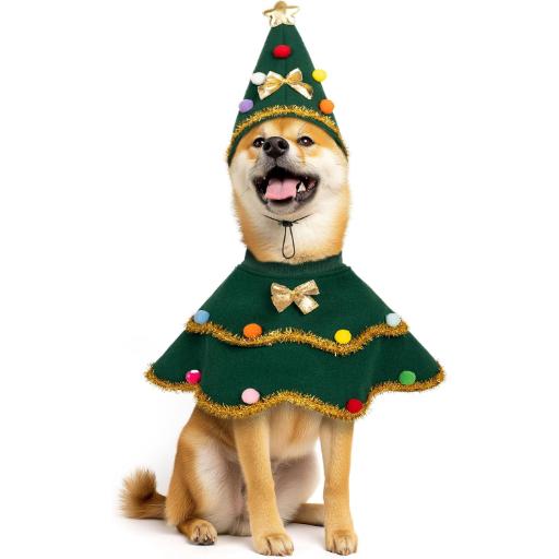 If you’re looking to make your pup the center of attention this holiday season, the Cyeollo Dog Christmas Costume brings the perfect mix of charm and cheer. Designed to resemble a cute, sparkly Christmas tree, this costume is made from soft, breathable fabric that keeps your dog cozy without restricting movement. It features festive details like colorful pom-poms and shimmering ruffles, giving your pet that show-stopping holiday look. Whether it’s for Christmas cards or neighborhood strolls, this outfit is sure to turn heads.