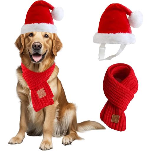 Santa Hat & Scarf Set for Medium to Large Dogs
